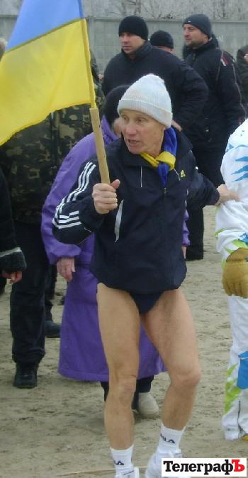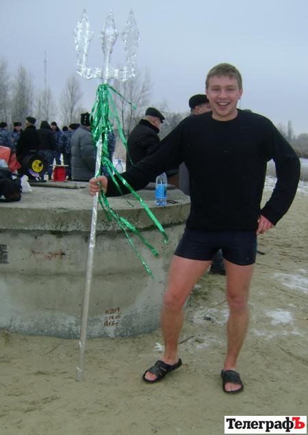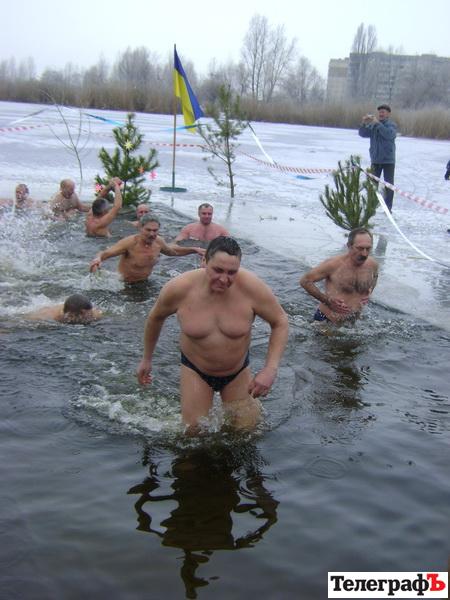 Искупаться в проруби местные «моржи» решили почти всем клубом и дружными рядами вышли в морозный день на пляж. Возглавлял это необычное движение главный «морж» города – Виктор Некрасов, который и сам лет 60 практикует холодно-водную «терапию», и других учит быть здоровым без лекарств. Местные моржи устраивают такое мероприятие не первый раз, но сейчас решили пригласить кременчужан, чтобы те поглядели на «погружение». Первыми в прорубь отправляются мужчины. При виде пловцов, легкий холодок пробегает где-то по позвоночнику. Хочется посильнее закутаться в шарф, шубу и принять чего-то согревающего. Толпа радостными криками приветствует храбрецов. Доплыв до края проруби, они возвращаются на сушу, где их ждут полотенца. Одеваться спешат не все – говорят, что стало жарко. Один из парней демонстрирует сальто. Прыгает, конечно, в ледяную воду.