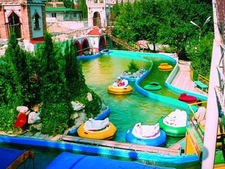 Еще один аттракцион с романтическим названием «Медленная река». Это желоб длиной 21 метр, где по течению плывут надувные лодочки. Течение создается с помощью насоса.