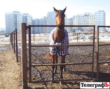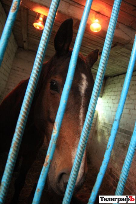 Це – Фіфа. Вона на лікарняному. Серйозно пошкодила ногу уламком арматури. Сталося це, коли Фіфа гуляла в манежі. За правилами, огорожа манежу має бути зварена з товстих гладких металевих труб. Але це дорого, а у міської влади грошей на школу ніколи не вистачає. Тому огорожа зварена з тоненької металевої арматури. Коли коні б’ють об неї копитами, арматура ламається, і гострі уламки рвуть коням ноги. До речі, будинки, які підступають впритул до пораненої Фіфи, згодом виростуть і на території школи. За Генеральним планом розвитку міста, тут має бути житловий мікрорайон. Тож, якщо депутати не вирішать питання будівництва нової школи, дитячий кінний спорт в Кременчуці зникне.
