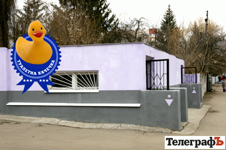 Під час двомісячника чистоти, старий кременчуцький туалет на вулиці Жовтневій фантастично помолодшав та погарнішав – його пофарбували в ніжно-фіолетовий колір. За дивним збігом обставин, виборча кампанія чинного міського голови мала саме такі корпоративні кольори.
