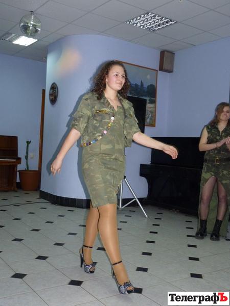 В Кременчугском военном лицее прошел конкурс «Мисс камуфляж», на котором уже третий год подряд первокурсницы лицея демонстрировали свои способности. Как говорит заместитель начальника по воспитательной части Елена Николаенко, в этом году за титул «Мисс камуфляж-2011» соревновалось 8 девушек.