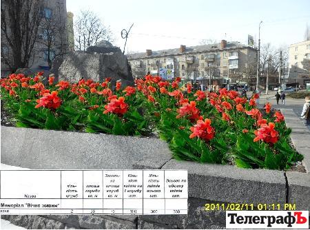 Красные канны будут цвести возле памятника «Вечно живым», а неподалеку от них будут цвести чернобрывцы.