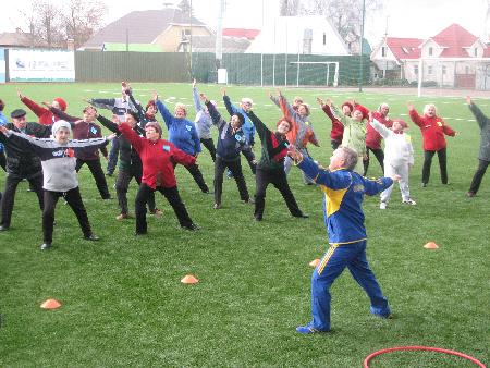 8-го апреля на новом городском стадионе собрались четыре команды возрастных спортсменов – две с Университета ІІІ-го возраста, и две сборные микрорайонов. После коллективной разминки на футбольном поле, под руководством бывшего военного Бориса Шкарина, 40 ветеранов соревновались в скорости, ловкости, и меткости, принимая участие в спортивных эстафетах с мячом.
