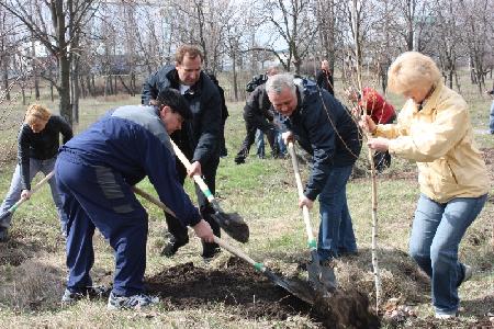 - Также во время субботника был благоустроен и парк «Юность». Силами депутатов, работниками ОАО «Крюковский вагоностроительный завод», работниками исполкома райсовета, управления труда и социальной защиты населения Крюковского района, а также учебных заведений района высажено более 200 деревьев, установлены скамейки, побелены деревья и бордюры. Община Свято-Варваровской церкви высадила почти 150 фруктовых деревьев, берез и сосен.