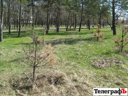 Ось так виглядає сьогодні сосна, посаджена паном Бабаєвим. «Телеграф» відвідав ті “політичні” насадження. Там більшість сосен загинули – бо за ними треба доглядати.