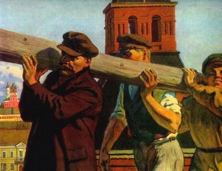 “Преемственность поколений”. Вождь пролетаріату Ленін активно пропагував ударні безоплатні суботники – і завжди брав у них участь. Приходив на суботники і носив колоди.