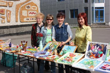 К празднику возле ДК ’’Кредмаш’’ выставили рабты детей, которые занимаются в кружках объединения детско-юношеских клубов по интересам