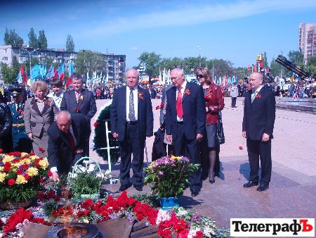 Вместе с членами президиума цветы к мемориалу возложил и экс-мэр Николай Глухов