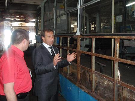 - Сегодня мэр Кременчуга Олег Бабаев посетил троллейбусное управление. Во время визита он посмотрел на состояние городских троллейбусов, процесс их ремонта, мойки.