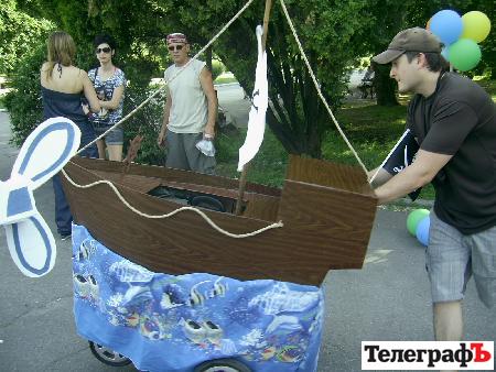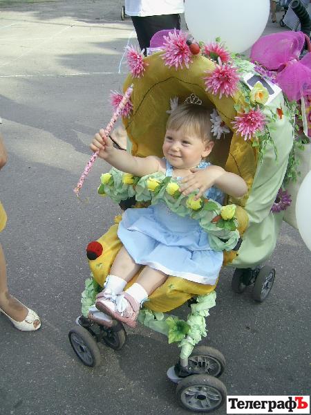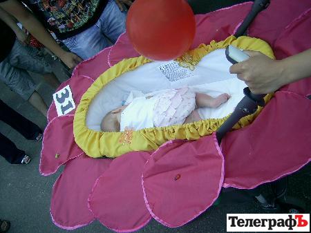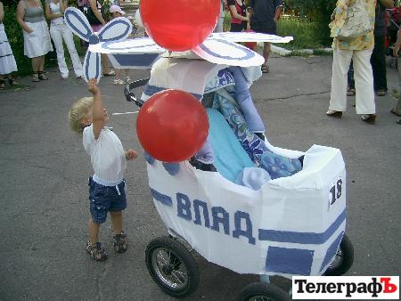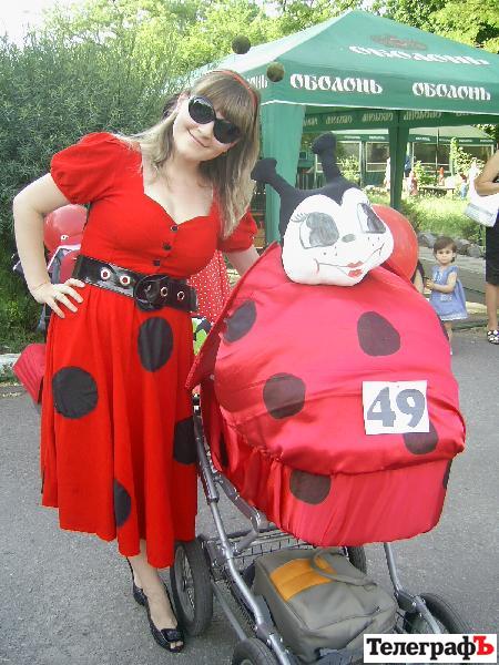 На празднике были коляски в образах корабля, гусеницы, вертолета, божьих коровок, дюймовочки и много-много других замечательных колясок.