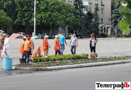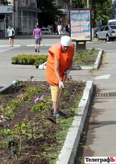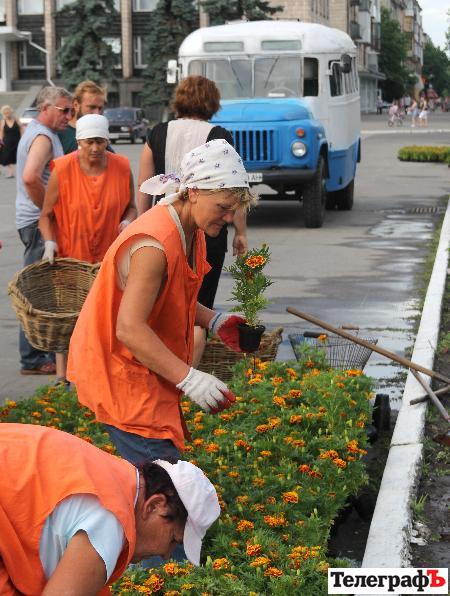 В Кременчуге на клумбе, что возле Дома Торговли, вместо непринявшихся роз и пеларгоний уже высаживают чернобрывцы.