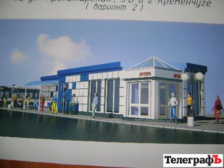 Напомним, старую остановку ’’Рынок’’, расположенную по улице Пролетарской по направлению движения автобусов в Крюков, снесли еще в 2010 году. А в конце августа того же 2010 главный архитектор города Виктор Труш сообщил, что на остановке «Рынок» появится новый павильон для пассажиров. Также архитектор пообещал, что там будет построена и аптека. Макет остановки вы можете посмотреть на фото. Новая остановка, по словам В.Труша, должна вписываться в архитектуру микрорайона, так как будет расположена вблизи нового супер-маркета АТБ. После того, как была снесена старая остановка, а новая не построена пожилые кременчужане начали жаловаться на то, что там нет даже скамейки, чтобы присесть. В феврале 2011 вице-мэр Николай Воловик сообщил, что архитекторы изучают вопрос, оставить остановку на существующем месте, или перенести ее. Тогда Н.Воловик сказал: ’’Я думаю, что в течение 2-3 недель этот вопрос решится». Теперь построить остановку обещает мэр. Будем надеяться, что он сдержит слово.