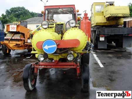 Для сравнения. Таким трактором наносили разметку раньше. Старожила еще подремонтируют, и он будет работать.