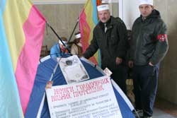 Всіх, хто заходив у приміщення вокзалу на початку тижня, дивував синій намет та люди біля нього з паперовими пов’язками на головах з написом „голодую”.