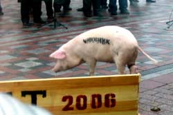 Під стінами парламенту в міліцейському оточенні перед коритом з написом „Держбюджет-2006” гуляли „олігарх” і „чиновник” – дві свині посеред купок лайна. Тут же стояли мікрофони. До них врешті-решт вийшла пара нардепів – партійних лідерів, що відверто закликали підтримувати політичні сили, які вони очолюють. Слухачів залишилось небагато. Народ змерз і зі згорнутими транспарантами потихеньку розходився. „Олігарх” було подався до дверей вищого законотворчого органу, та його вчасно відтягли і прив’язали, бідного, за ногу до огорожі.
