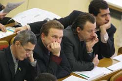 Рекордні дев’яносто питань порядку денного, пов’язані з життєдіяльністю міста, депутати розглядали мимохіть. Плідно попрацювавши на депутатських комісіях, обранці не вдавалися до обговорень. “Сесійний час” вони використали для того, щоб попрацювати на пресу та показати з її допомогою народу, хто з фізично та ідейно присутніх у залі місцевих діячів чого вартий.