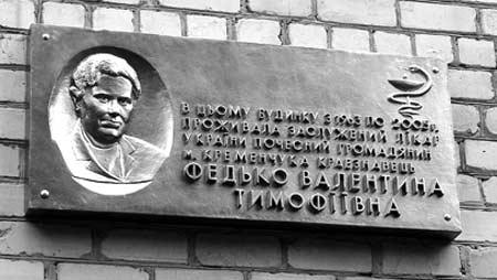 Ще за життя Валентина Тимофіївна була удостоєна звання Заслуженого лікаря України, а у 1994 році стала Почесною громадянкою Кременчука – за великий внесок в організацію міської системи охорони здоров’я. Пані Федько народилася у 1913 році, обрала професію медика і довгий час працювала на посаді директора Кременчуцького медичного училища. До речі, її дочка – Ірина Федько, також обрала медицину, і зараз очолює міський шкірвендиспансер.