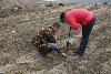 – Меч вот так загоняем, – демонстрирует наш гид, – делаем отверстие. Теперь опускаем в ямку саженец – сперва глубоко, чтобы корень правильно расположился. А теперь поднимаем до коренной шейки и просто держим!