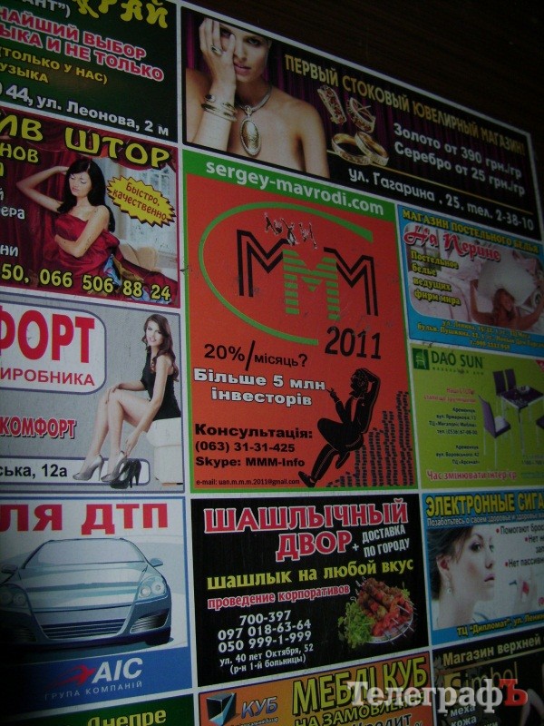 На рекламу МММ мы наткнулись в лифтах кременчугских многоэтажек. Звонить по телефону или заходить в скайп я не стала, но пошла по адресу на сайт. Объявление привело на страничку в Интернете с риторикой, характерной для недовольных бедных бабушек и дедушек.