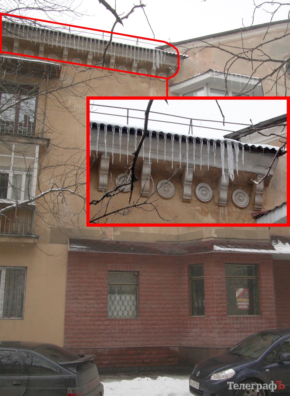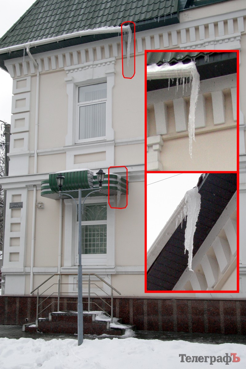 Пройдясь по улицам Ленина, Горького, Бутырина и Шевченко, «ТелеграфЪ» насобирал целую фотоколлекцию сосулек, которые нависают над пешеходными дорожками.