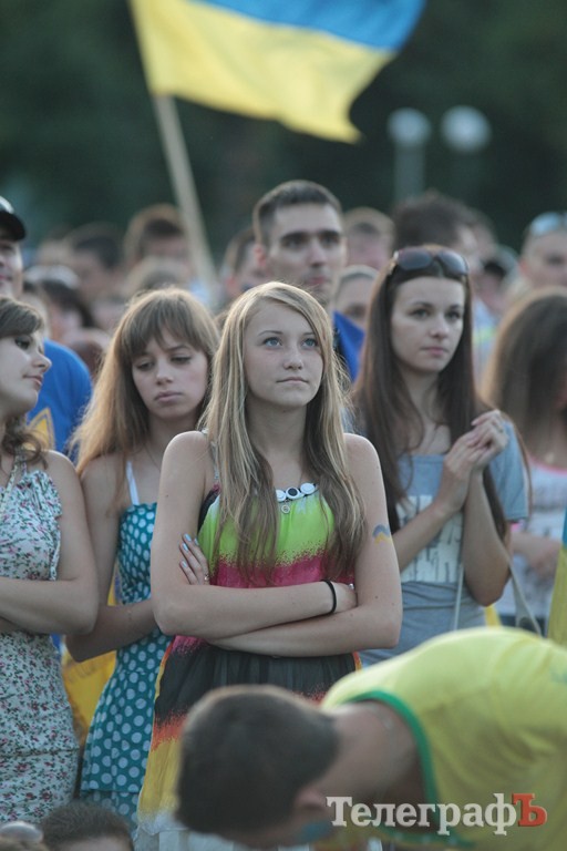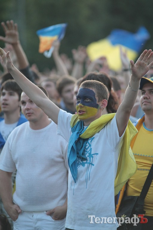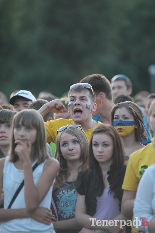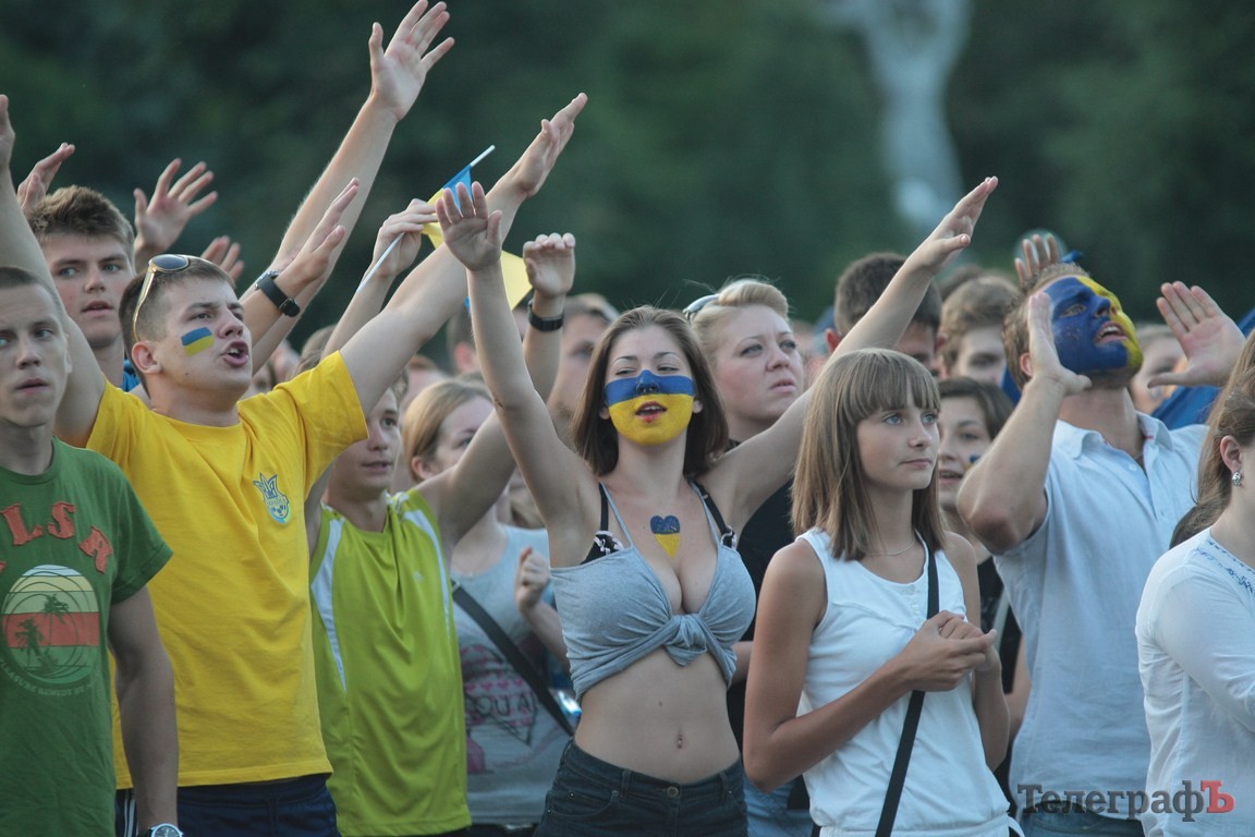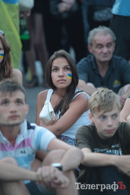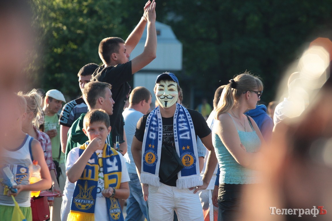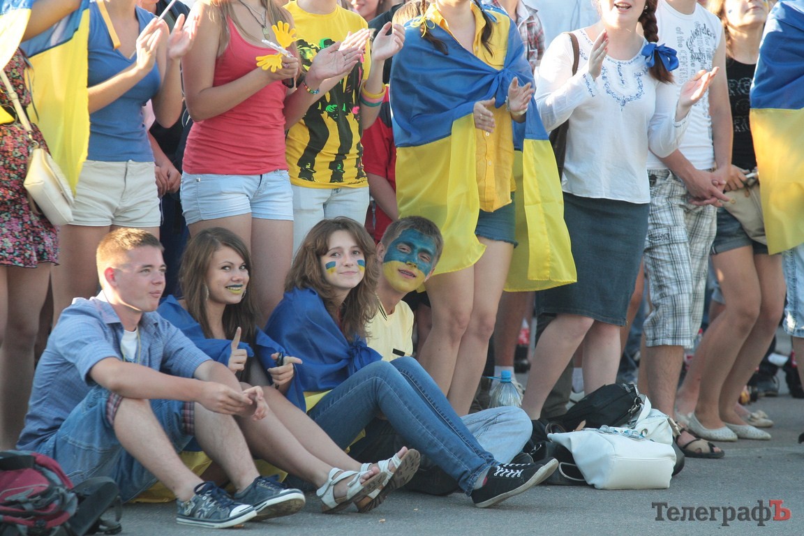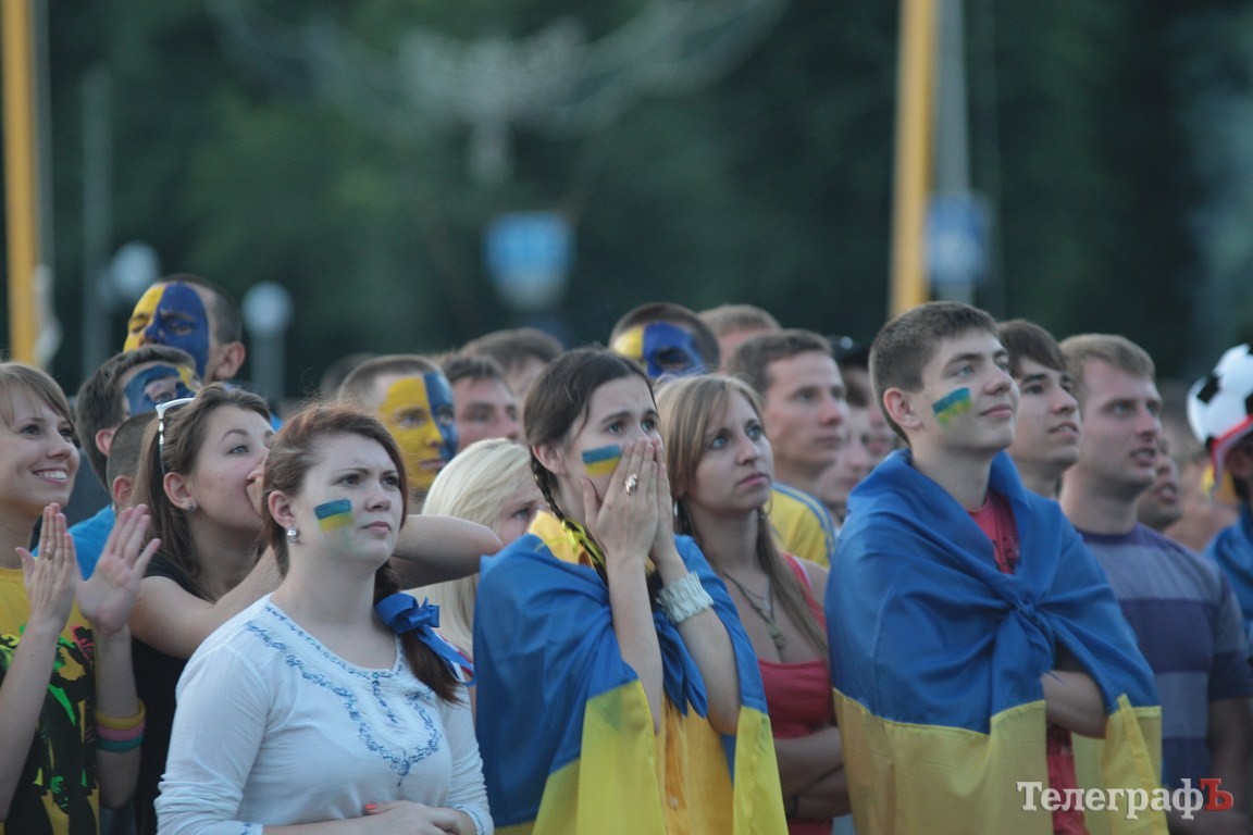 Толпы фанатов с раскрашенными лицами и в футболках «Евро 2012» два с половиной часа кричали, пели, танцевали и прыгали на площади Независимости. Совершенно незнакомые люди разрисовывали друг друга синей с желтой краской и обнимались. Через пять минут после начала матча игру остановили, но фанаты остались на своих местах в надежде на то, что матч все-таки продолжат. Какой же порыв эмоций вызвали слова «матч переносится на 20.00»!