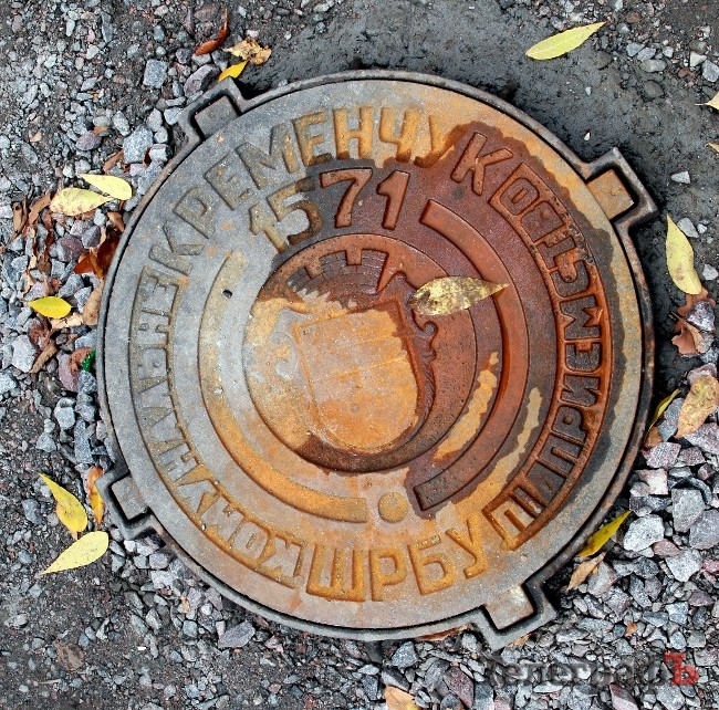 В Кременчуге на улице Шевченко появились патриотические люки с изображением герба города, датой его основания — 1571. Можно и определить их принадлежность по надписи ШРБУ (на украинском — «Шляхове-ремонтно-будівельне управління»).