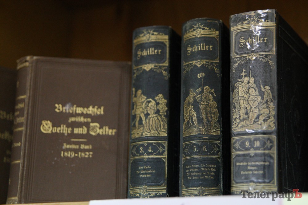 - Экспозиция отдела иностранной литературы: древнейшие книги кременчугской библиотеки, среди которых - произведения Шиллера и Гете выпущенные в XIX веке. Эти издания - коллекционные экземпляры, которые в разные времена дарили кременчугской библиотеке.