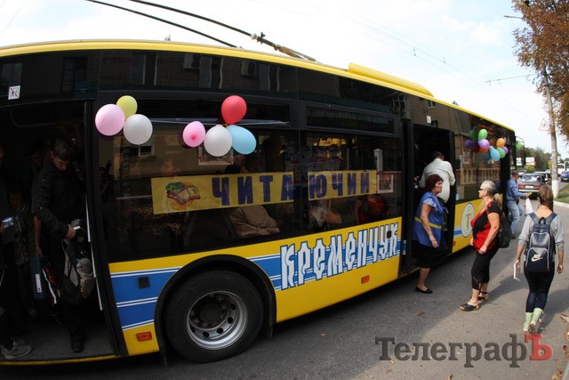 Сегодня, 12 сентября, в Кременчуге в рамах празднования Дня города и Дня библиотекаря впервые прошла акция от центральной библиотечной системы и троллейбусного управления - «Читающий троллейбус».