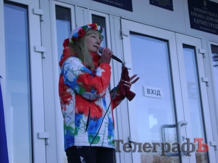 Начался митинг с того, что люди спели Гимн Украины: солировала джазовая певица Наталья Лещенко, а кременчугский Майдан ей подпевал.