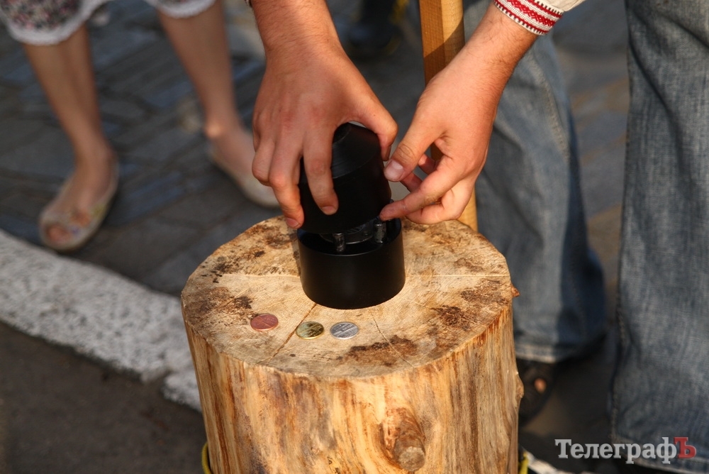 На «Монетном дворе Кремнчуга» любой желающий, даже ребенок мог попробовать сделать монету себе на счастье собственноручно.