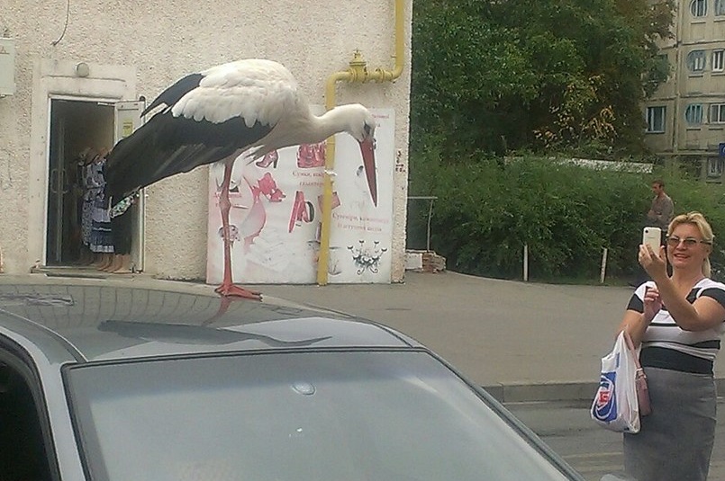Читатель «Телеграфа» Олег Латухин прислал фотографии приключений Гриши и рассказал, что после того, как аист слез с машины, он пошел на остановку клянчить еду у прохожих. А они в свою очередь радостно его кормили и удивлялись дружелюбию птицы.