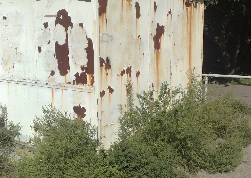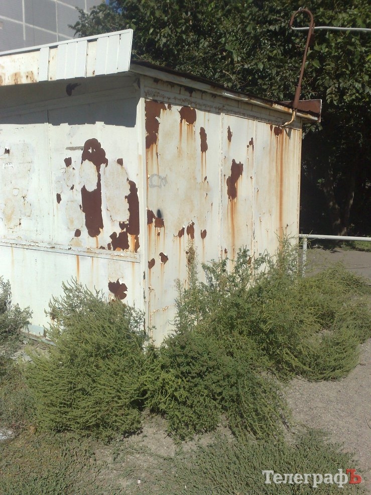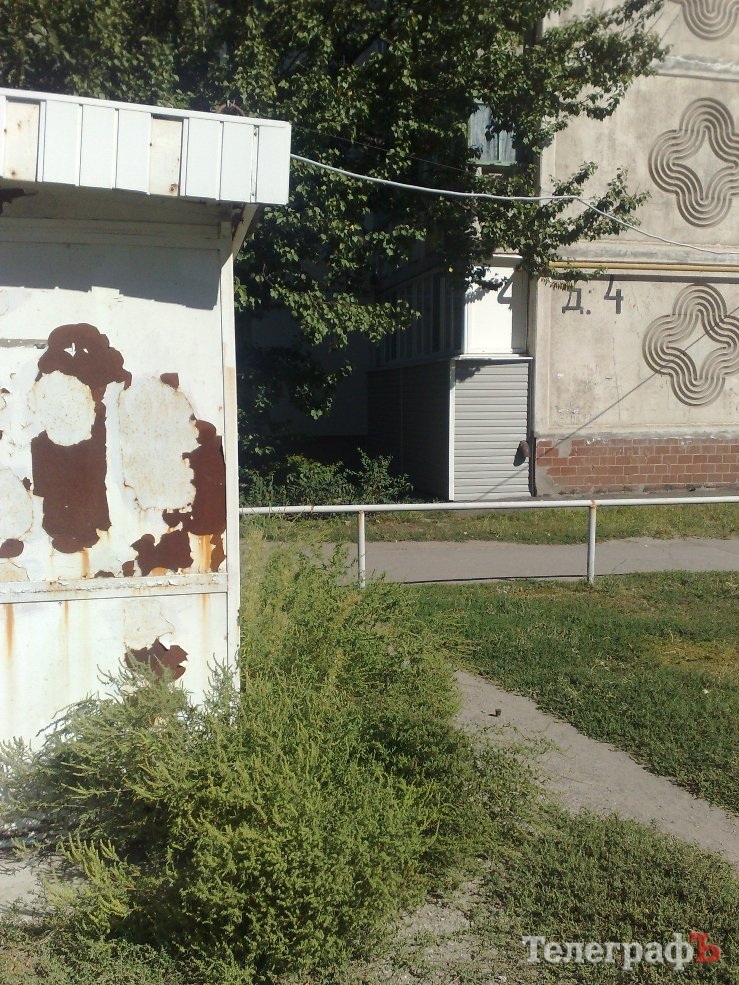 Рядом с домом, по адресу ул. Воинов Интернационалистов, 4 стоит старый ржавый киоск, по периметру обросший амброзией.