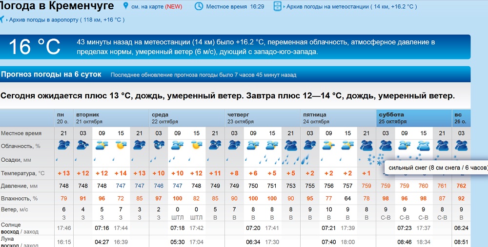 Вместе с тем, некоторые интернет-агенства прогнозируют в Кременчуге снег в ночь с пятницы на субботу. Кроме того, после небольшого затишья, во второй половине недели снова поднимется сильный холодный ветер. На дорогах синоптики не исключают гололедицу.