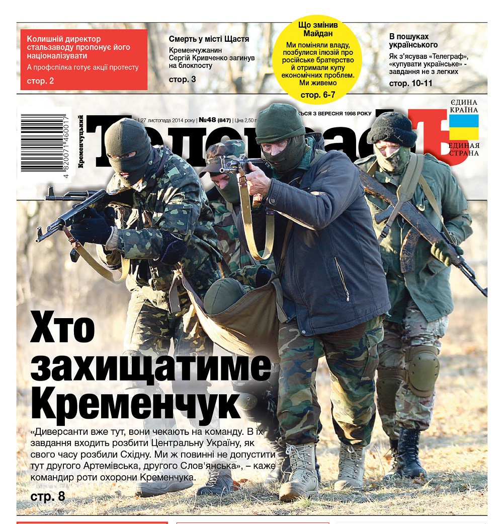 ... о том, что в случае диверсии Кременчуг будет защищать рота охраны: она готова к бою, хотя одета с миру по нитке. Командир роты считает, что диверсанты уже здесь и ждут команду разбить Центральную Украину - статья Алексея Ладыки "Кто будет защищать Кременчуг" - на стр. 8