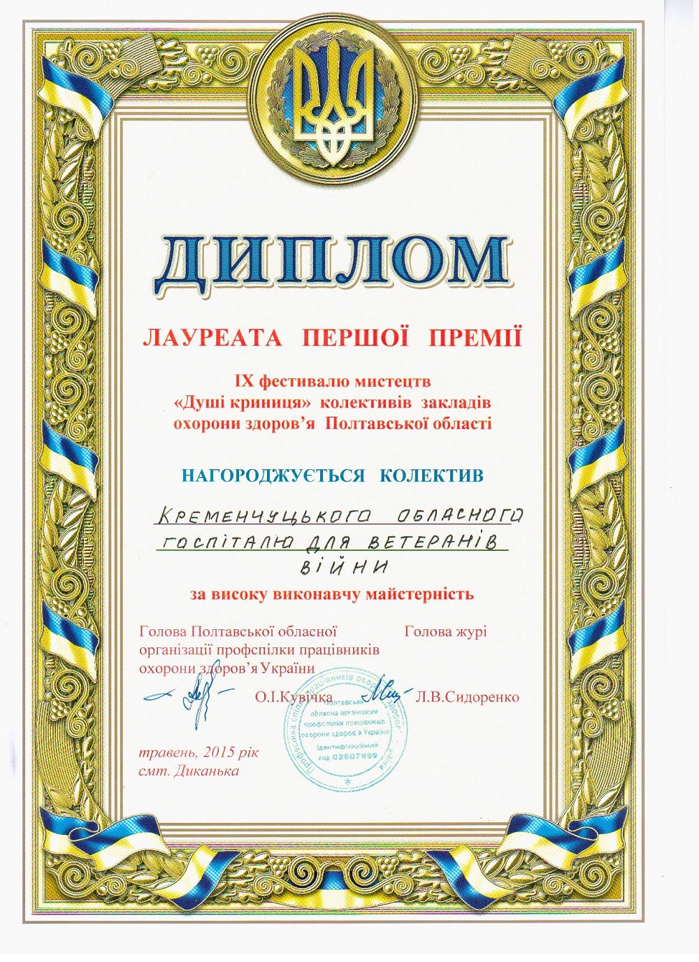 Коллектив кременчугского госпиталя стабильно, третий год подряд, занимает на конкурсе первое место. Так произошло и в этом, 2015-м, году.