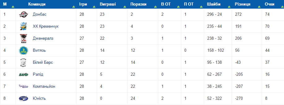 Турнірна таблиця