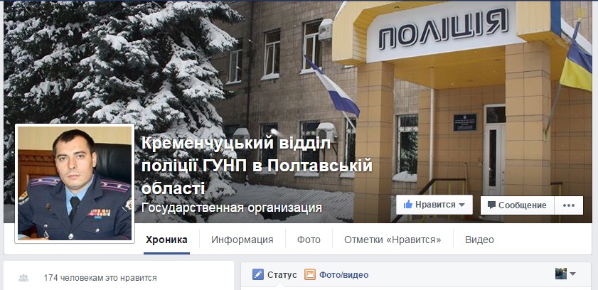 У Кременчугского райотдела полиции теперь есть собственная страница в Facebook. "Завести" аккаунт в соцсети районным отделам поручило руководство полиции Полтавской области.