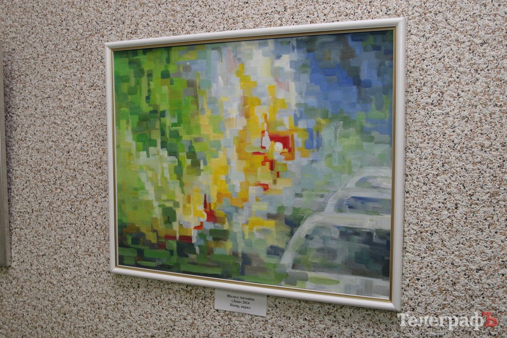 Стіни великої зали галереї наразі прикрашають картини художниці та викладача Кременчуцької дитячої художньої школи Антоніни Шелест та роботи іі учнів. Всі картини поєднані у експозицію «Мій всесвіт», яку започаткував триптих з однойменною назвою. Цей триптих показує душу людини та її внутрішній світ. Але в основному Антоніна Шелест полюбляє писати пейзажі на натуралістичні натюрморти. Як пояснила художниця, кожне літо вона проводить у селі, де може споглядати та насолоджуватися красою природи, що потім перекладає на полотно.