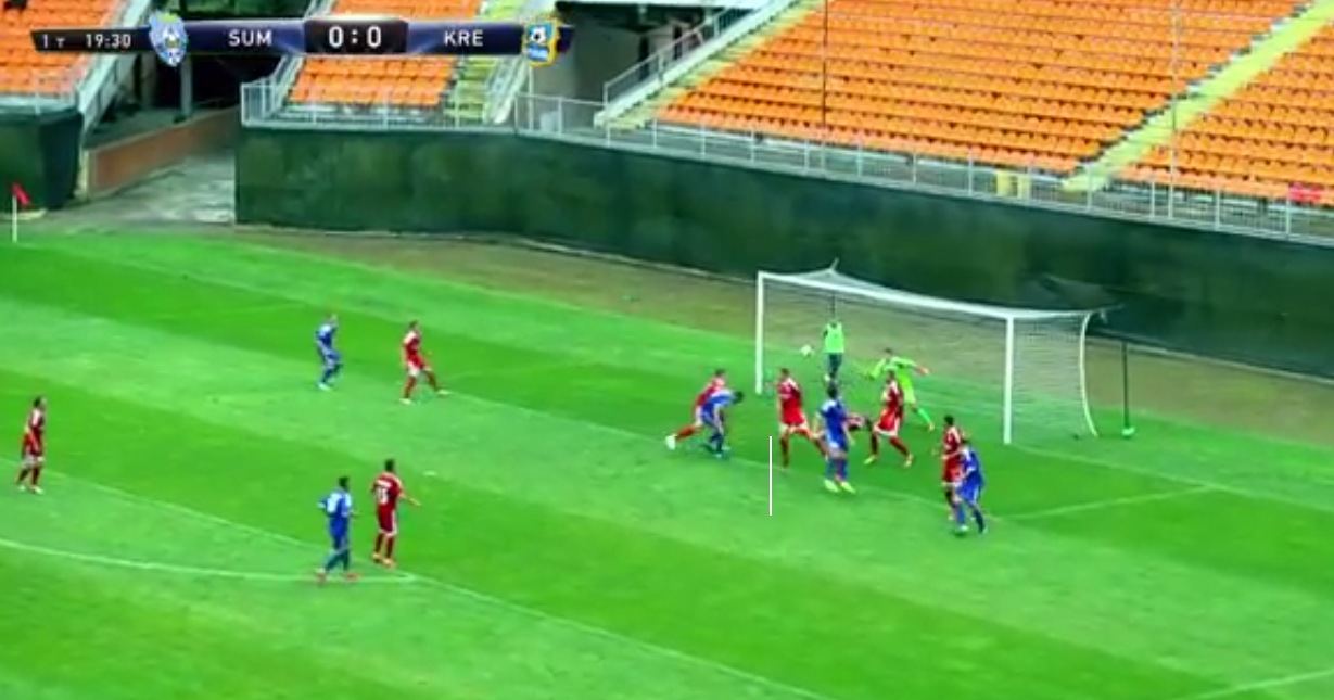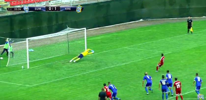 Сумчани мали можливість зрівняти рахунок, коли Янаков зіграв рукою й арбітр вказав на точку. Таким подарунком долі не дав скористатися голкіпер «синьо-білих» Віталій Онопко, він перевів м’яч на кутовий врятувавши команду від гола. До перерви «Кремінь» міг збільшити перевагу, але до кінця не змогли реалізувати свої моменти Янаков та Прошенко.
