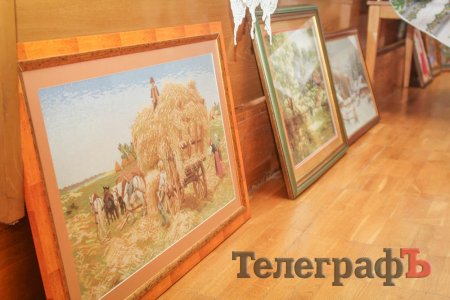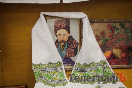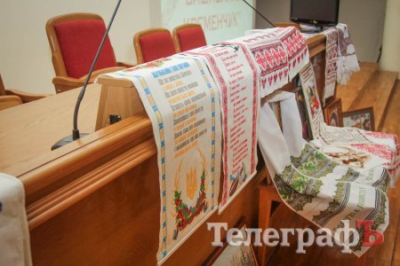 Серед представлених картин були картини вихованців Кременчуцької колонії та відомої майстрині Ніни Касевич з вишитим Тарасом Шевченком. До речі, вишитого хрестиком Тараса Шевченка кременчужанка подарує міській владі Кременчука.