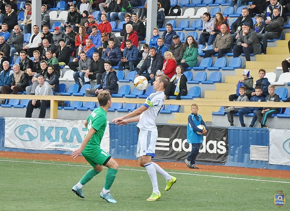 Вже на початку матчу «Кремінь» мав можливість вийти вперед. Біля штрафної гості спочатку збивають Янакова, а потім прийшлося зупиняти Тєртишного. Арбітр вказав на одинадцятиметровий. «Точку» пішов виконувати досвідчений бомбардир «синьо-білих» Ігор Тимченко. Капітан пробив не сильно чим дозволив Денчуку парирувати удач, на добиванні першим був Піскун, але Влад ударом головою відправив м’яч у руки голкіпера «Авангарду».