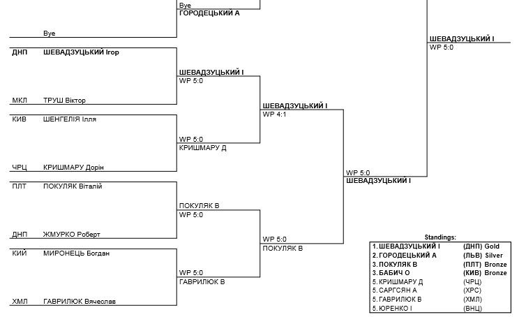Всеволод Сліпченко у ваговій категорії 75 кг у першому поєдинку переміг киянина Романа Науменка, але  поступився срібному призеру Андрію Терегері з Києва.