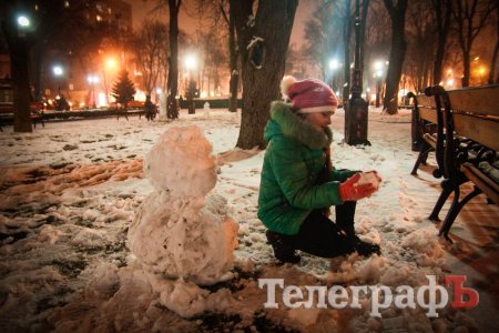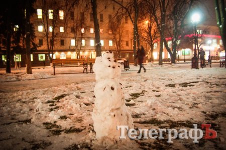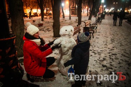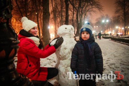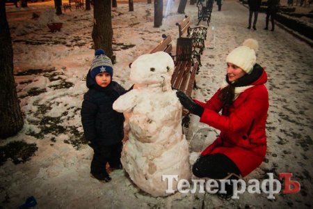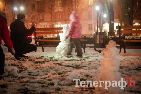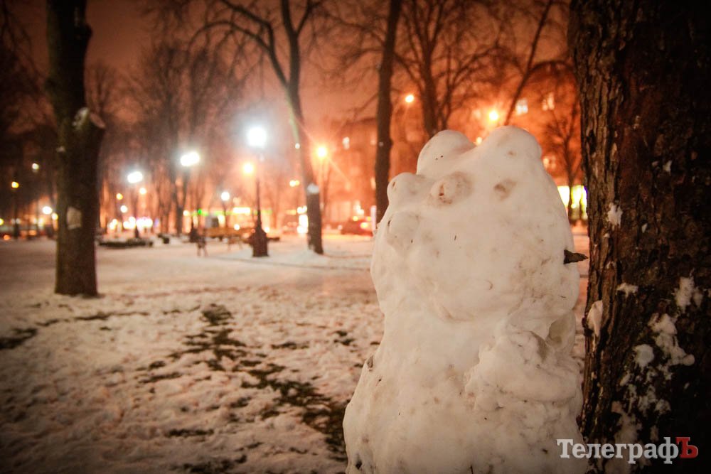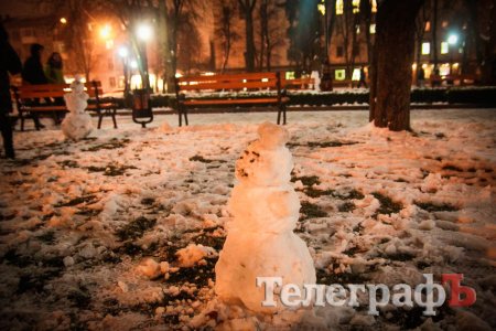 Вечером 17 января сквер Бабаева в центре Кременчуга стал площадкой для лепки снеговиков. Благодаря выпавшему снегу, дети и взрослые наконец-то смогли нормально скатать что-то вменяемое. Утром от снеговиков не осталось и следа...