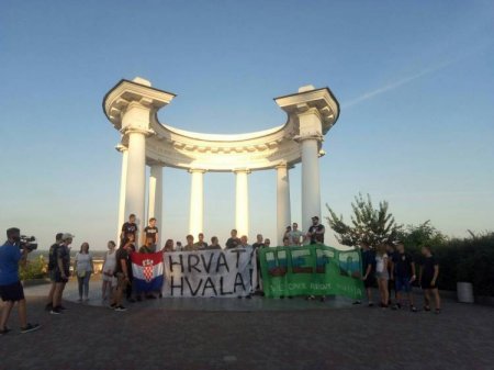 Вчора ввечері, 10 липня, полтавці зібралися біля Білої Альтанки, щоб підтримати збірну Хорватії. Кілька десятків полтавців, серед яких були ветерани російсько-української війни, футбольні фанати та інші небайдужі громадяни розгорнули національні прапори Хорватії та банери з написом: «Hrvati, hvala» та «UEFA: we care about Russia».