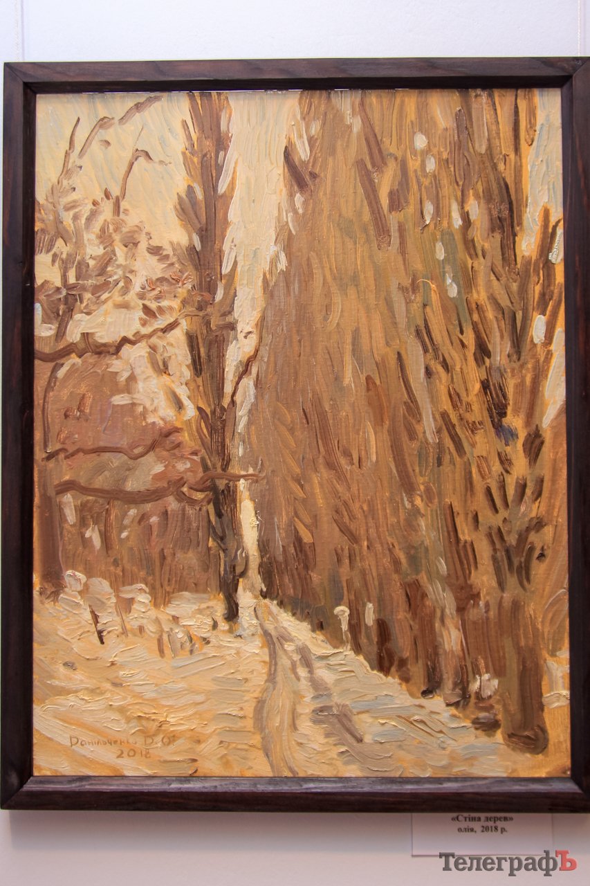 Хлопець живе у Крюкові, тому переважна більшість його картин — це краєвиди правобережжя Кременчука. На виставці представлені роботи Даніїла періоду останніх чотирьох років. За словами самого автора, аналізуючи свої пейзажі, робить висновок, що перші роботи були більш яскравими, пізні виконані більше у темних тонах. Улюблену роботу митець виділити не може, адже кожна несе у собі щось особливе. Поділився цікавою історією про створення картини «Вечірній сплеск»: