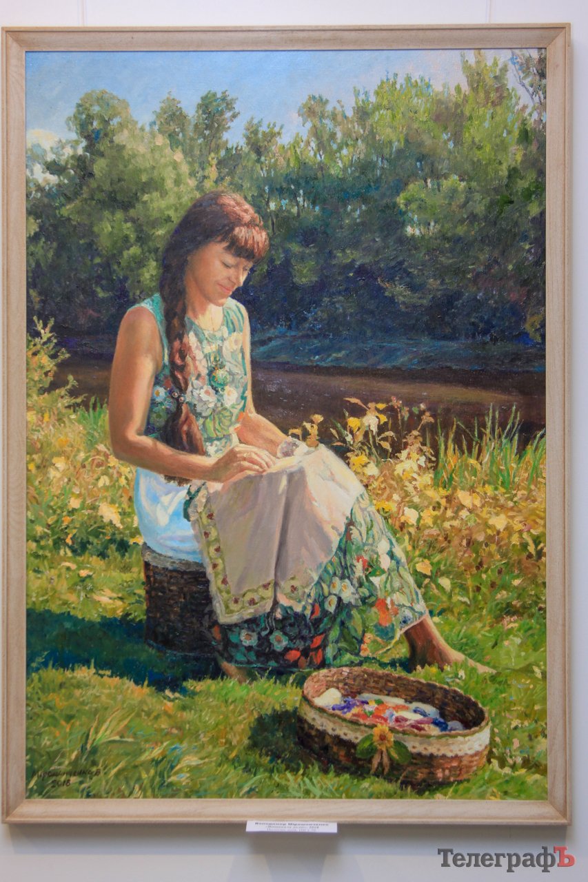 Художник трохи розкрив для нас секрети створення робіт: спочатку він їздить і фіксує на етюдниках сюжети, які подобаються, а потім вдома переписує на більші полотна. У Володимира Івановича є ціла серія полотен «На підвіконні» — він пише квіти, які додому приносить дружина. Знакова робота для нього — це картина, де він зобразив свою дружину, яка займається вишиванням.