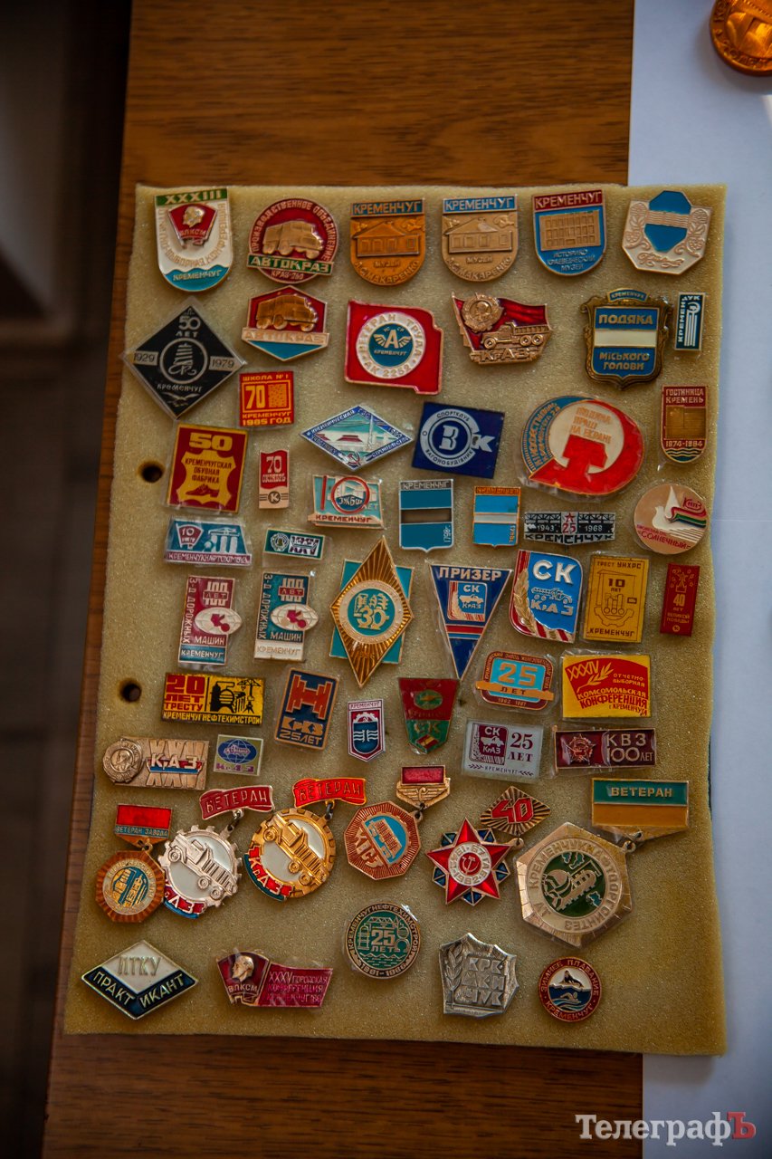Також на виставці відвідувачі галереї могли побачити значки з кременчуцькою тематикою.