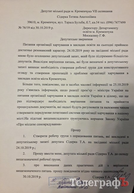 24 жовтня депутатка Сідерка на сесії міської ради надала депутатський запит, основними трьома питаннями якого були наступні: