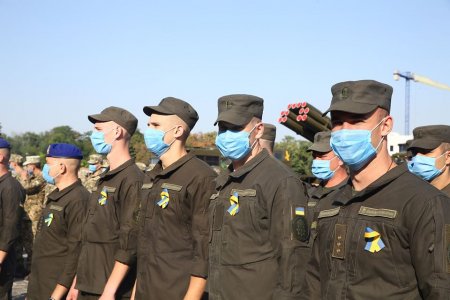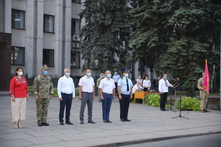 Право підняти Державний прапор України було надане випускникам Військової академії міста Одеса 2020 року - лейтенантам Віктору Гончару та Максиму Січкарю.