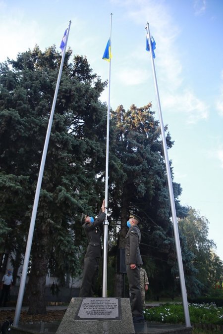 Пам’ять про загиблих захисників української незалежності учасники заходу вшанували хвилиною мовчання. На честь подвигу українських патріотів пролунали залпи військового салюту. Урочистим маршем пройшли військовослужбовці частин міста.